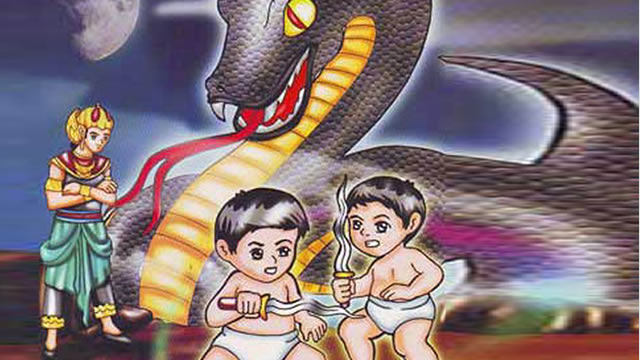 Ajaibnya, walau masih bayi mereka sudah bisa berlari-lari sehingga sang prabu pun maklum bahwa mereka bukan bayi sembarangan. Kedua bayi kembar tersebut mengatakan bahwa ibu mereka ditelan oleh ular besar. Maka mereka bertiga pun segera mengejar ular besar yang menelan Putri Rarang Purbaratna.